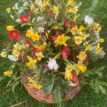 I create natural style funeral flowers with no floral foam. I use my own flowers and can gather flowers from your garden if requested. I try to make each arrangement just right for the deceased using colours, or special flowers if they are in season, and each has a garden gathered style.