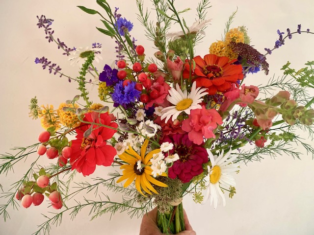 I grow a lovely range of seasonal flowers which will be chosen and picked for your special day. My bouquets have a wild, natural, just-picked style.
